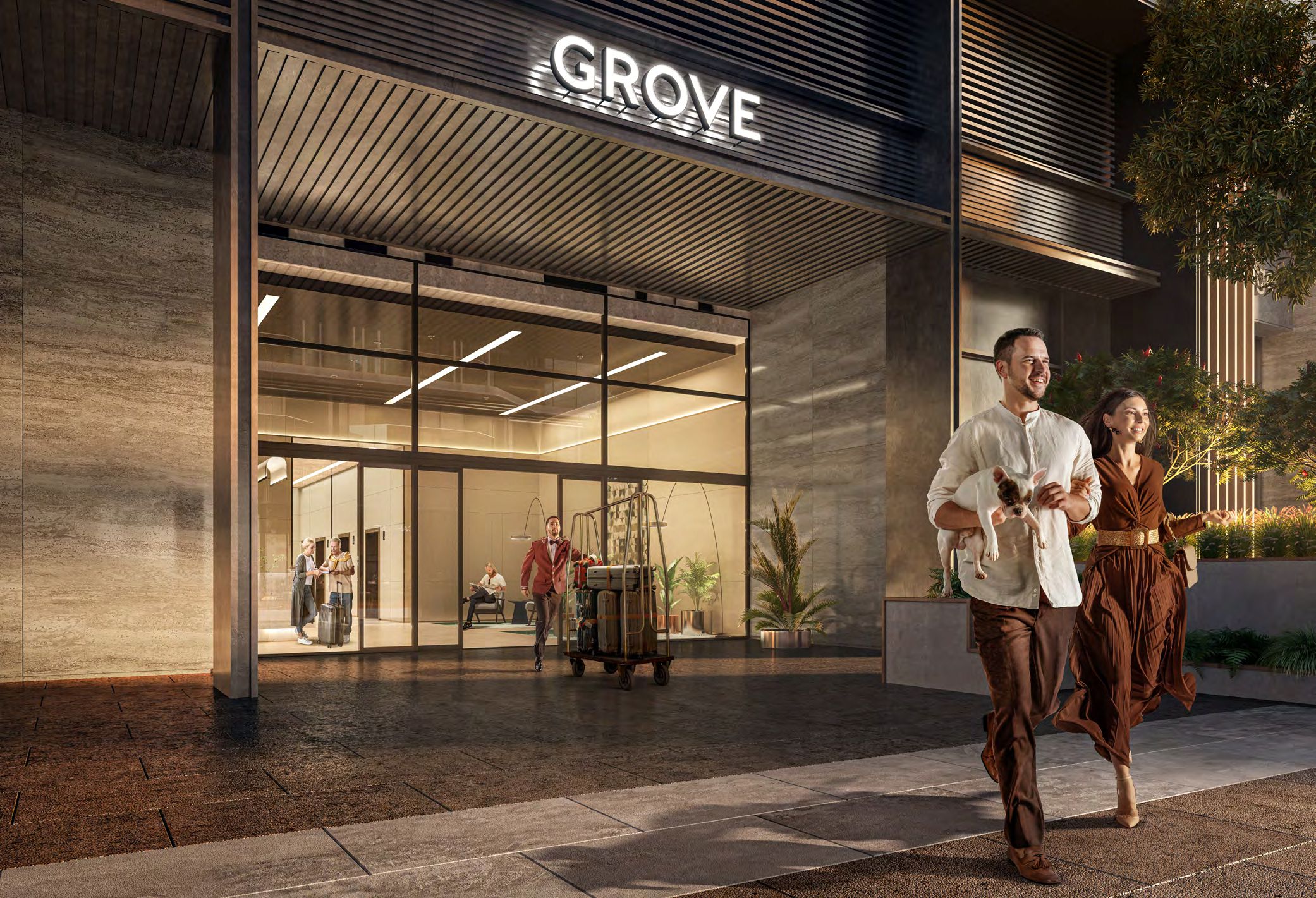 What amenities can residents expect at Grove Beach Views?